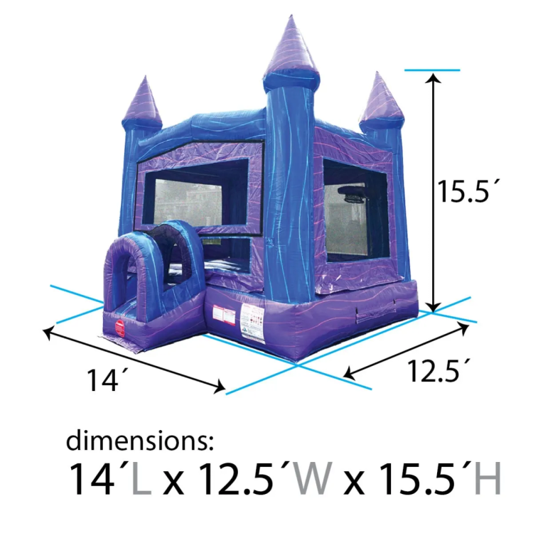Transform any event into a dreamy, playful adventure with our Cosmic Purple Palace! This stunning purple-marble modular bounce house brings a magical mix of color, comfort, and excitement - perfect for birthdays, backyard parties, school events, church functions, and more.